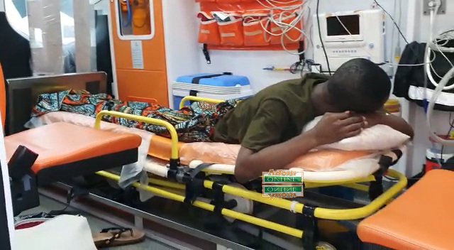 The 28-year-old man, who was lying on a stretcher in an ambulance, has since called on all Ghanaians to come to his aid to at least sit-down.