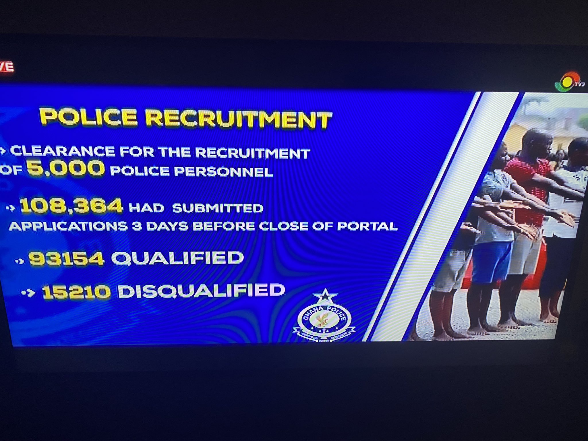 According to the Police Service recruitment numbers, a total number of 108,364 independent applications were received. Upon perusal, only 93,154 qualified per the information they provided, the other 15,210 had their applicantions disqualified.