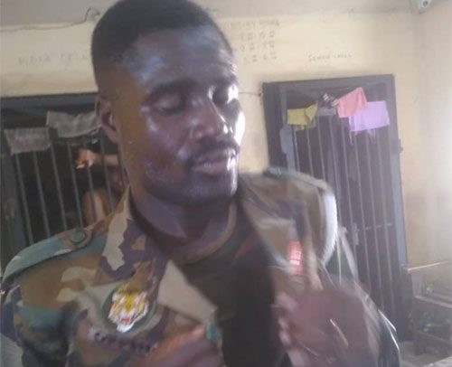 His incoherent responses to questions posed by the soldiers gave him as a fake soldier whereupon he was handed over to the Osu Police Station for further investigation.