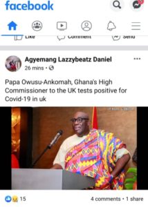 Information reaching Ghanawish Radio and Ghanawish.com is that Ghana’s High Commissioner to the UK Paapa owusu-ankomah tests positive for Covid-19