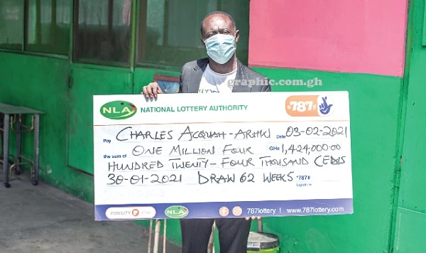 A marketer, Mr Charles Acquaah-Arhin, has won a GH¢1.42 million jackpot lottery of the National Lotteries Authority (NLA).