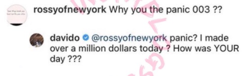 On sigting the post, Davido quickly retorted that he was he made over a million dollars and preceded to say him how his day has been like- a rhetorical question that reveals he’s doing well with his time unlike him.