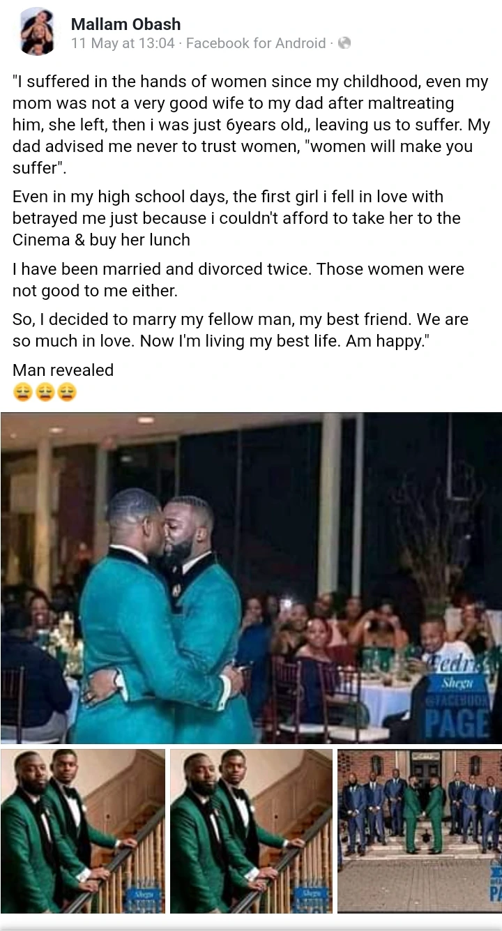 According to him, he is currently living his best of life. He added that, he is having no regret for marrying a fellow man because women will make you suffer.