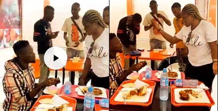 A video making the rounds on social media shows the moment a lady turned down a man’s proposal at a restaurant.