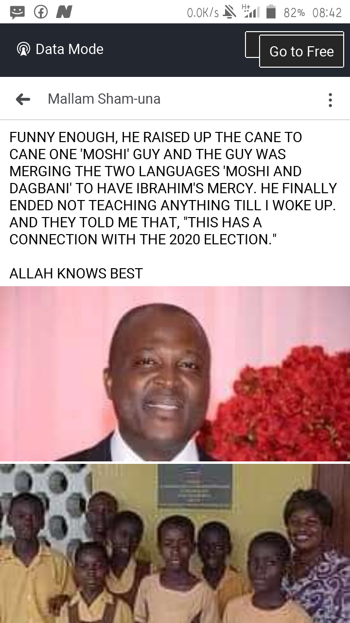 The same Islamic Numerologist has revealed yet another dream in which he was a student in JHS 3 with some of his friends, then Ibrahim Mahama appeared with cane in his hands after one of his brothers finished teaching English language as he was the newly posted National service individual, he went further to explain that he was flogging almost every student in the class except the ones who could fluently speak DAGBANI.