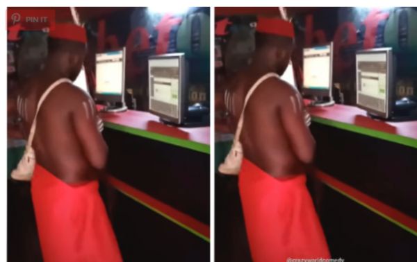 In a video, a juju man is seen in his full native regalia as he makes his way to betting premises to stake a bet.