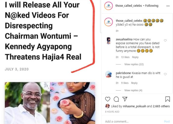 In a screenshot that has landed on Instagram blog, Those Called Celebs’ page, Outspoken politician, Hon Kennedy Agyapong is said to have allegedly issued a warning to Hajia4real to show respect to Chairman Wontumi or he would take her on.
