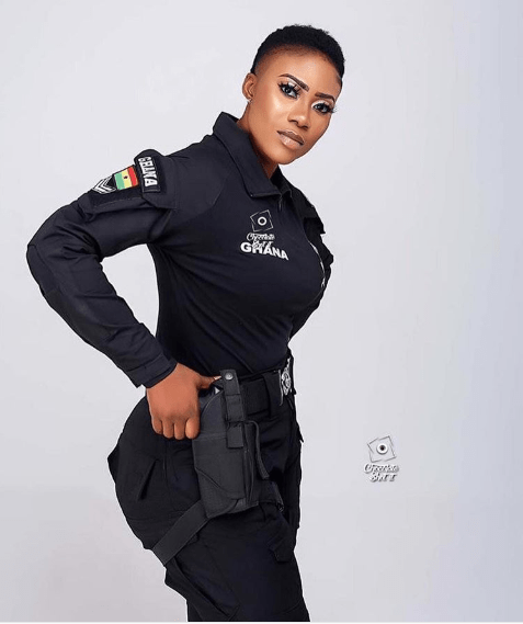 Wearing a tight-fitting police uniform with her gun on her hip, Queen Maya is the perfect description of work and happiness in Ghana as we speaks.
