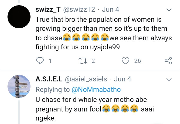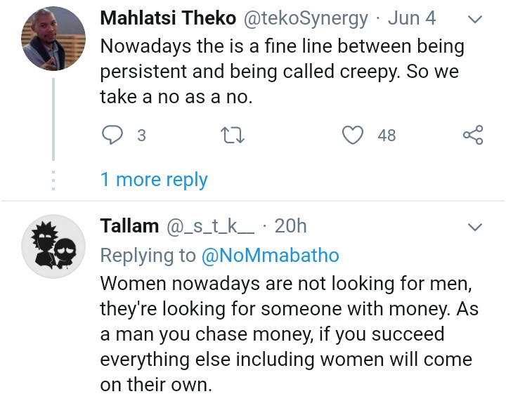 • Here is a reply from@tekosynergy. According to him, men are only trying to respect theirselves. They do want to be called names.