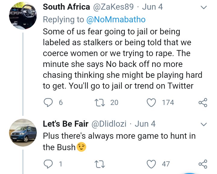@Zakes89 feel that most men fear being accused of rape thereby going to jail. So they preffer to be left alone.