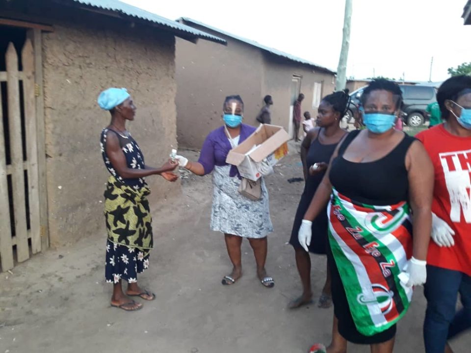 Hon. Linda Obenewa visited some communities accompanied by selected women Organizers to help the distribution. Hon. Linda Obenewa and the team visited Osuwem, Volivo, Dodowa Market, Adakop3 and other communities and educate them on consistent hand washing under running water.