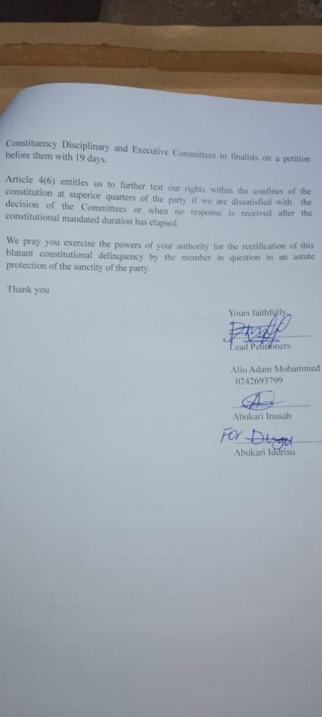 The petition had Aliu Adam Mohammed, Abukari Inusah and Abukari Iddrisu as its signatories.