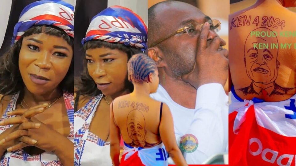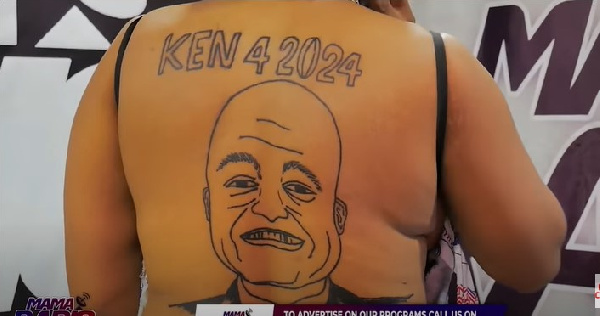 A New Patriotic Party (NPP) supporter in the Bortianor-Ngleshie-Amanfrom Constituency has inked an image of the party’s flagbearer hopeful, Kennedy Agyapong on her back.