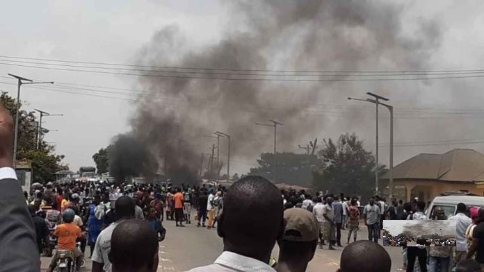 Dotsey Koblah Aklorbortu reports that the residents set some tyres ablaze to express their displeasure with the bad nature of their roads.