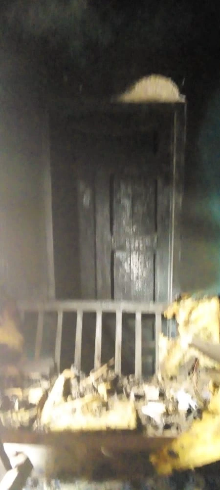 The three of them who were in the room got burnt together with all their belongings in the room.