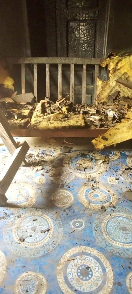The suspect, Wisdom who rides someone’s commercial tricycle, “pragyia” for living, set fire to ablaze his wife’s room at midnight whilst the woman and two other people were deeply and fast asleep.