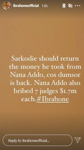 In a current post by Ibrah One, he asked Sarkodie to return the money because Nana Addo couldn’t solve ‘Dumsor’ which is gradually becoming a topic of interest for politicians and Ghanaians at large.