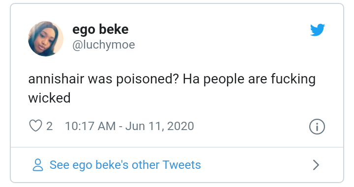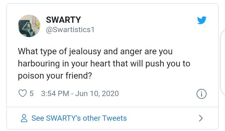 Her post read; ‘Apparently, this girl who owns a restaurant has been supplying food to and slowly poisoning her friend who owns a hair place since January. The friend died some days ago’