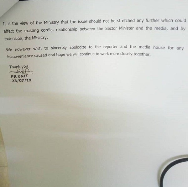 The statement also apologised to the reporter and the media house for any inconvenience caused.