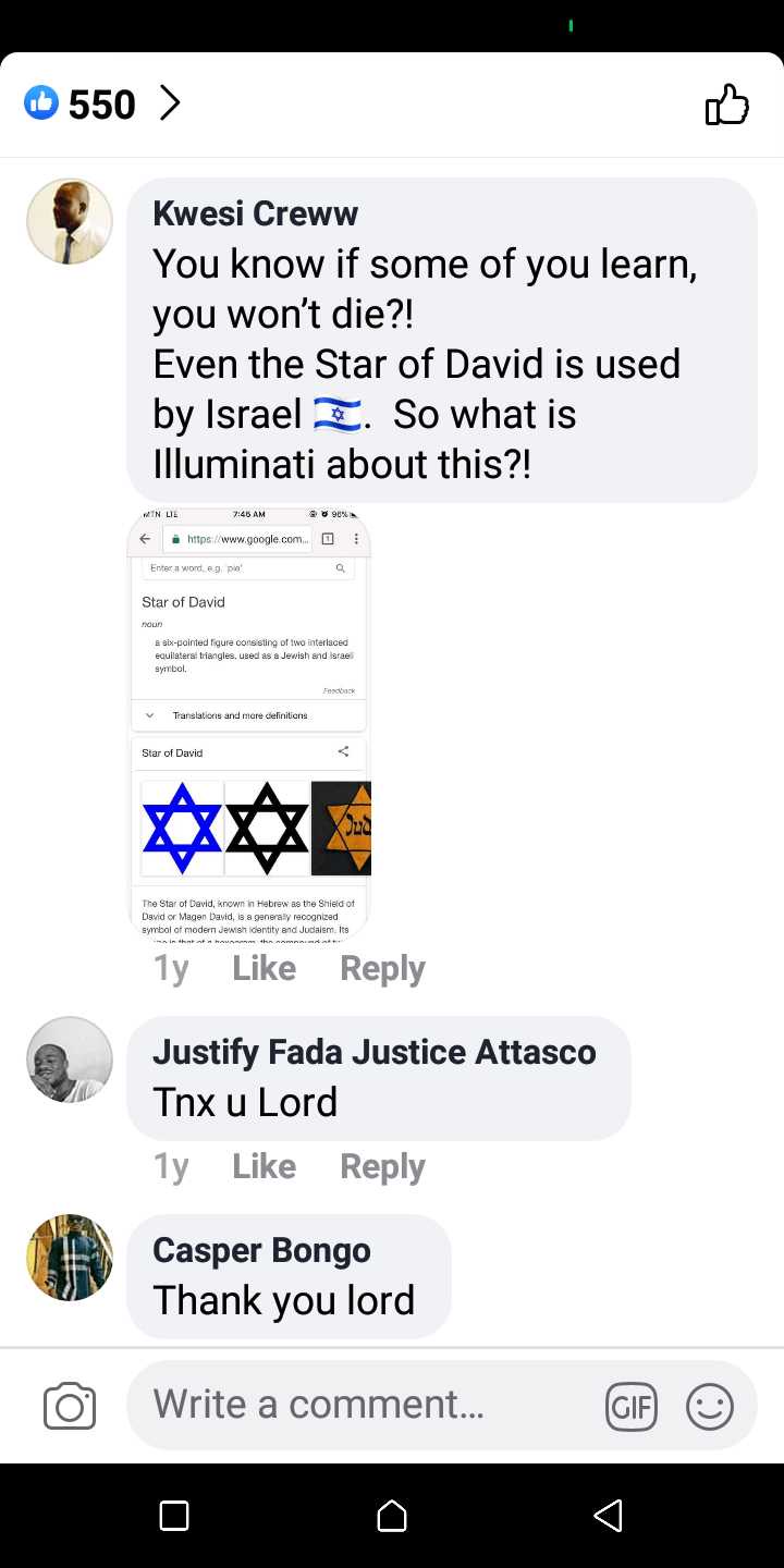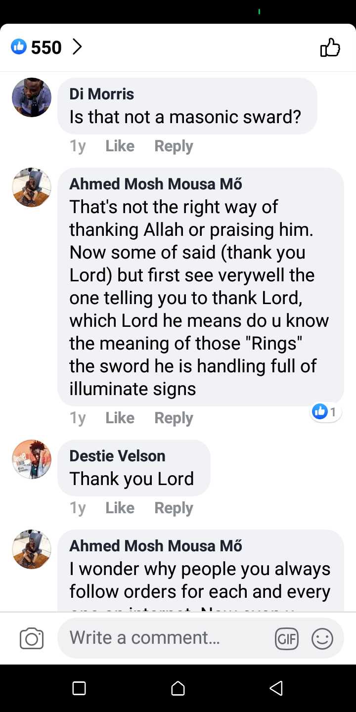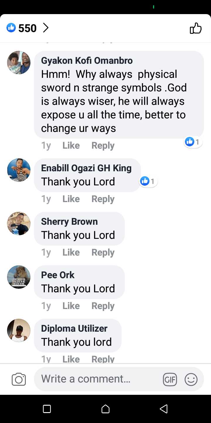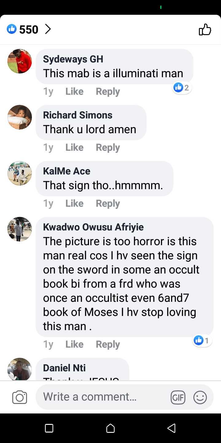 Other comments doubted his credibility as a real man of God, speculations and accusations were flying all over the comments section until one Kwesi Creww explained that the symbol on the sword is the star of biblical character David and not a demonic symbol as most people speculated.