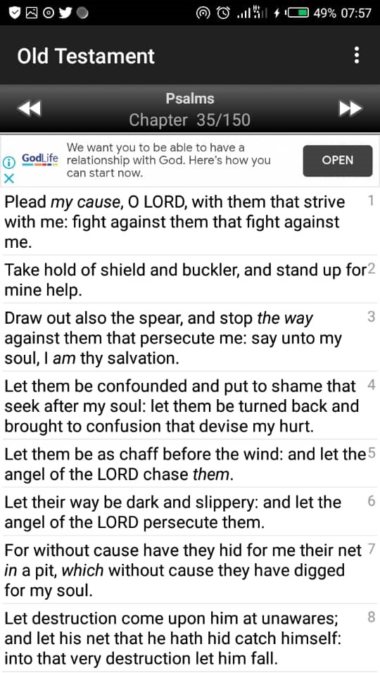 The first verse read, “O LORD, with those who contend with me; fight against those who fight against me”.