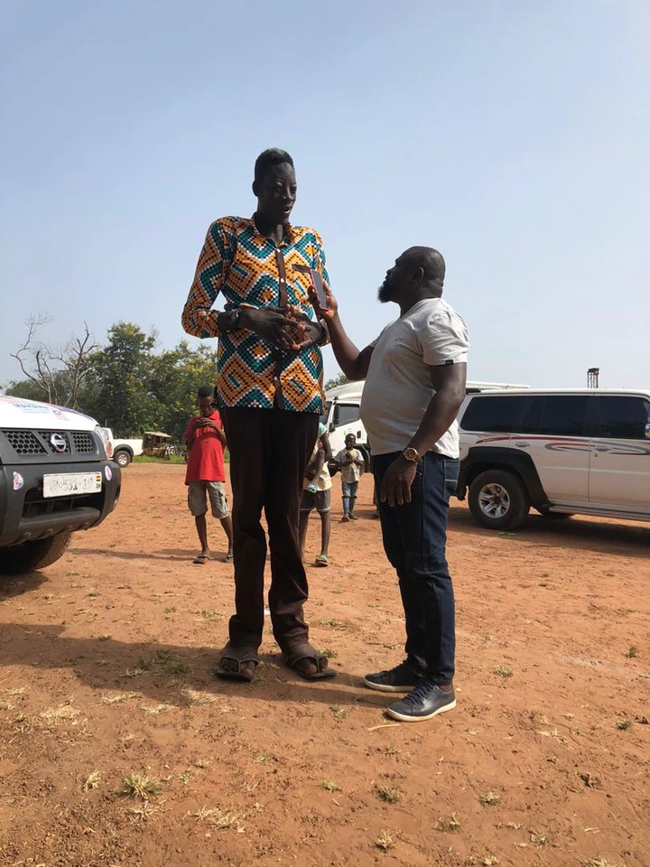 Sulemana Abdul alias Awuche, a 27-year-old who was featured on Joy News as the tallest man in Northern Ghana and is apparently suffering from a rare medical condition known as gigantism, which will have to be treated.