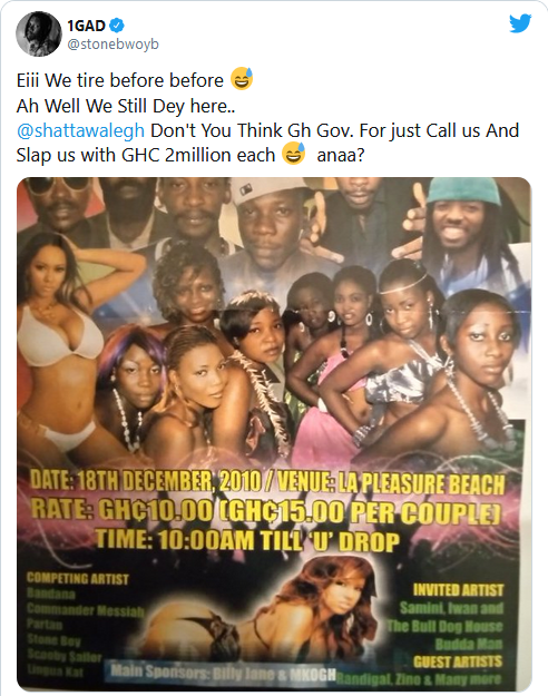 The photo from 2010 was from a competition held at the La Pleasure Beach to award the Dancehall King and Queen in Ghana at the time.